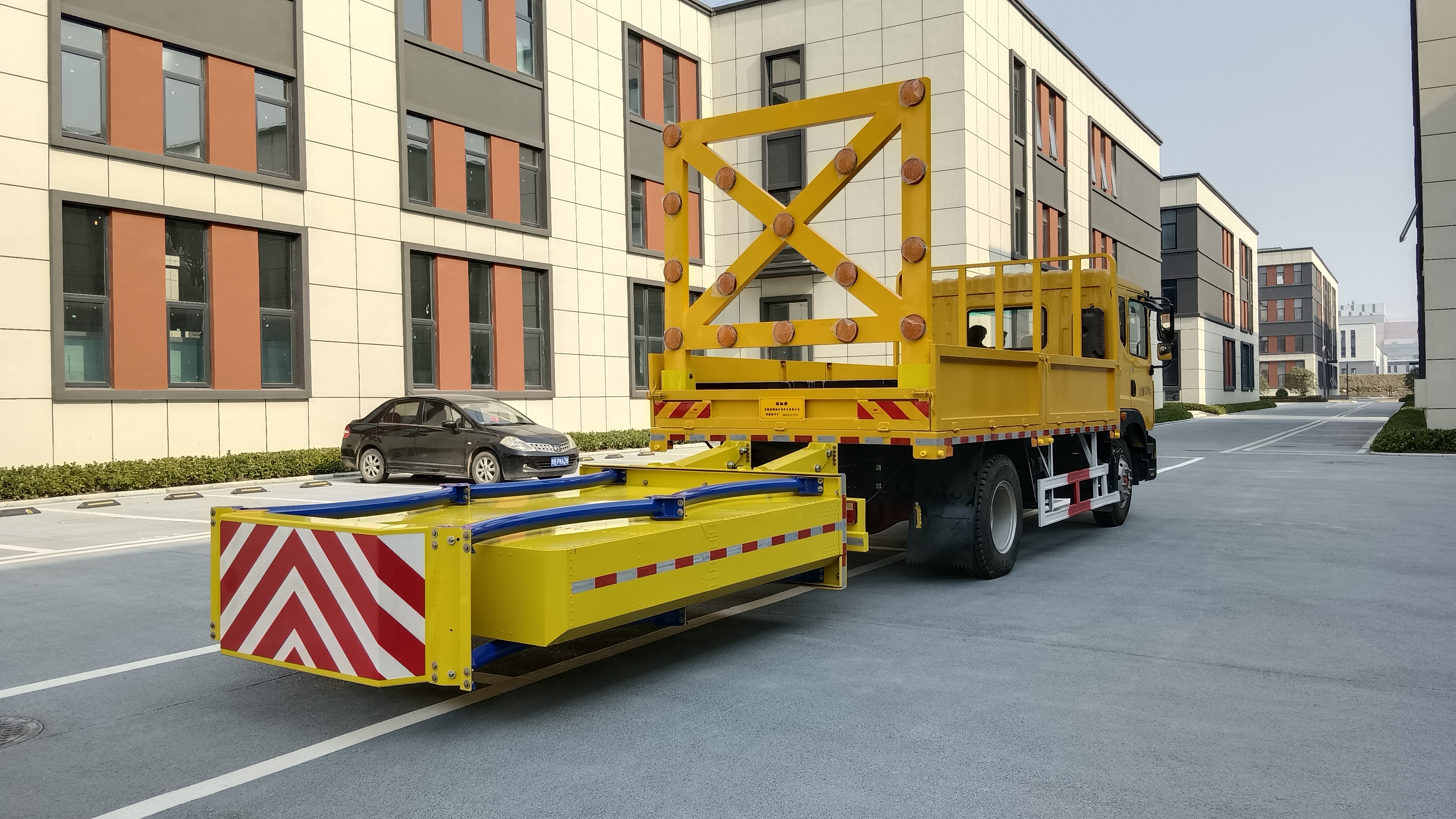 警示燈光要求 | 防撞緩沖墊工作及行駛過程中均具備同步燈光系統(轉向燈、剎車燈、行車燈、霧燈、示廓燈、側標示燈等) | ||